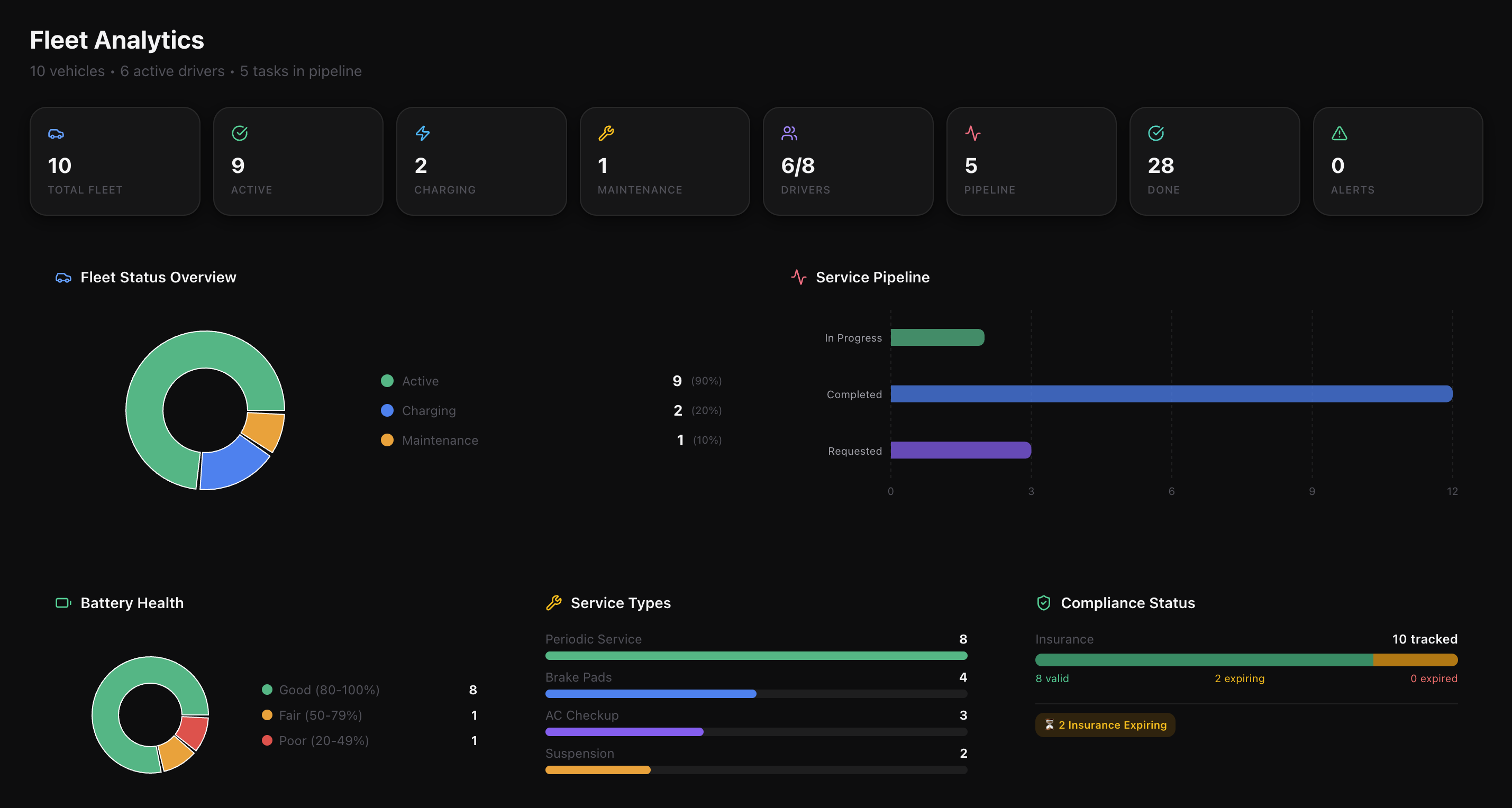 Instantly view gross revenue, total active fleets, fleet utilisation %, and outstanding critical alerts on a unified screen.