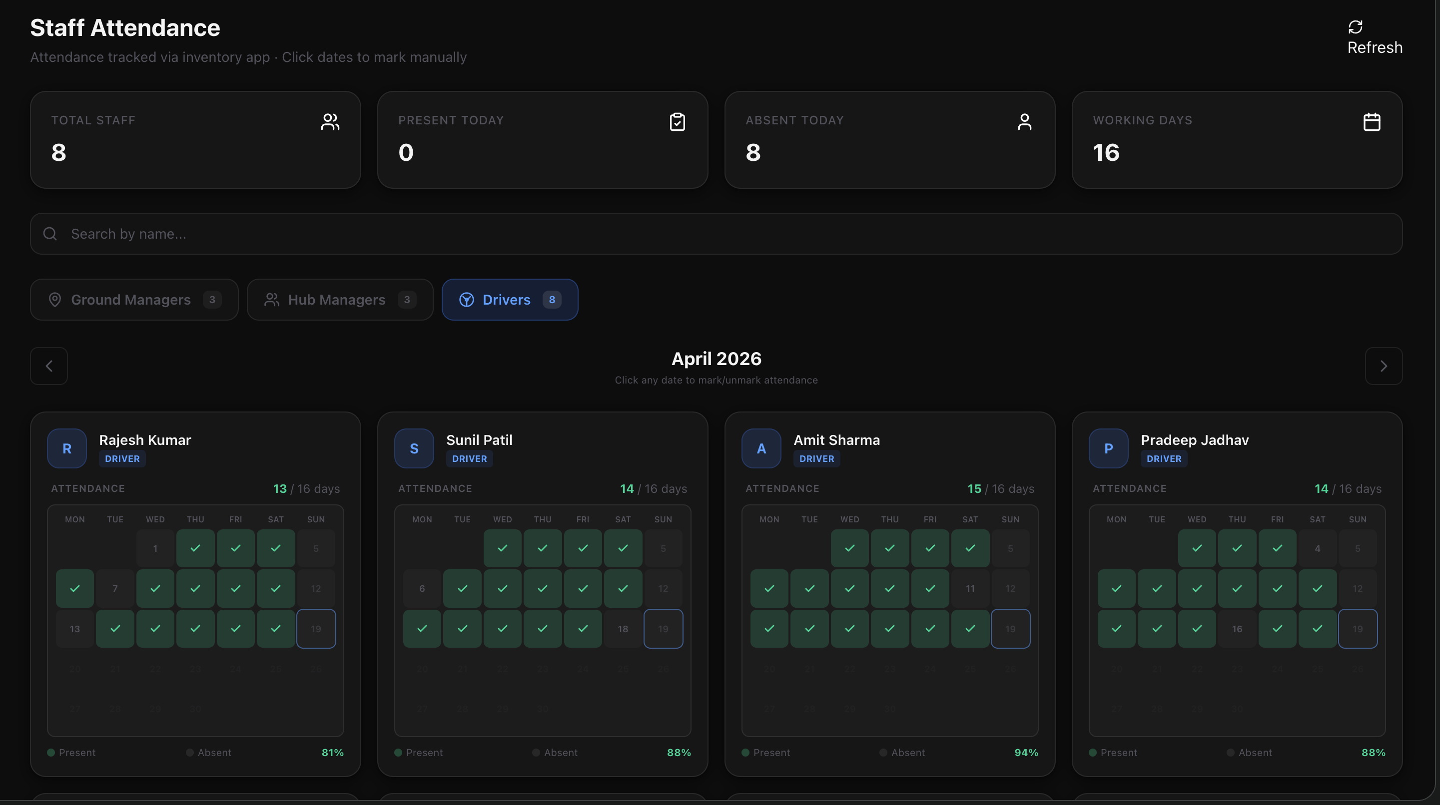 Shift Attendance Matrix