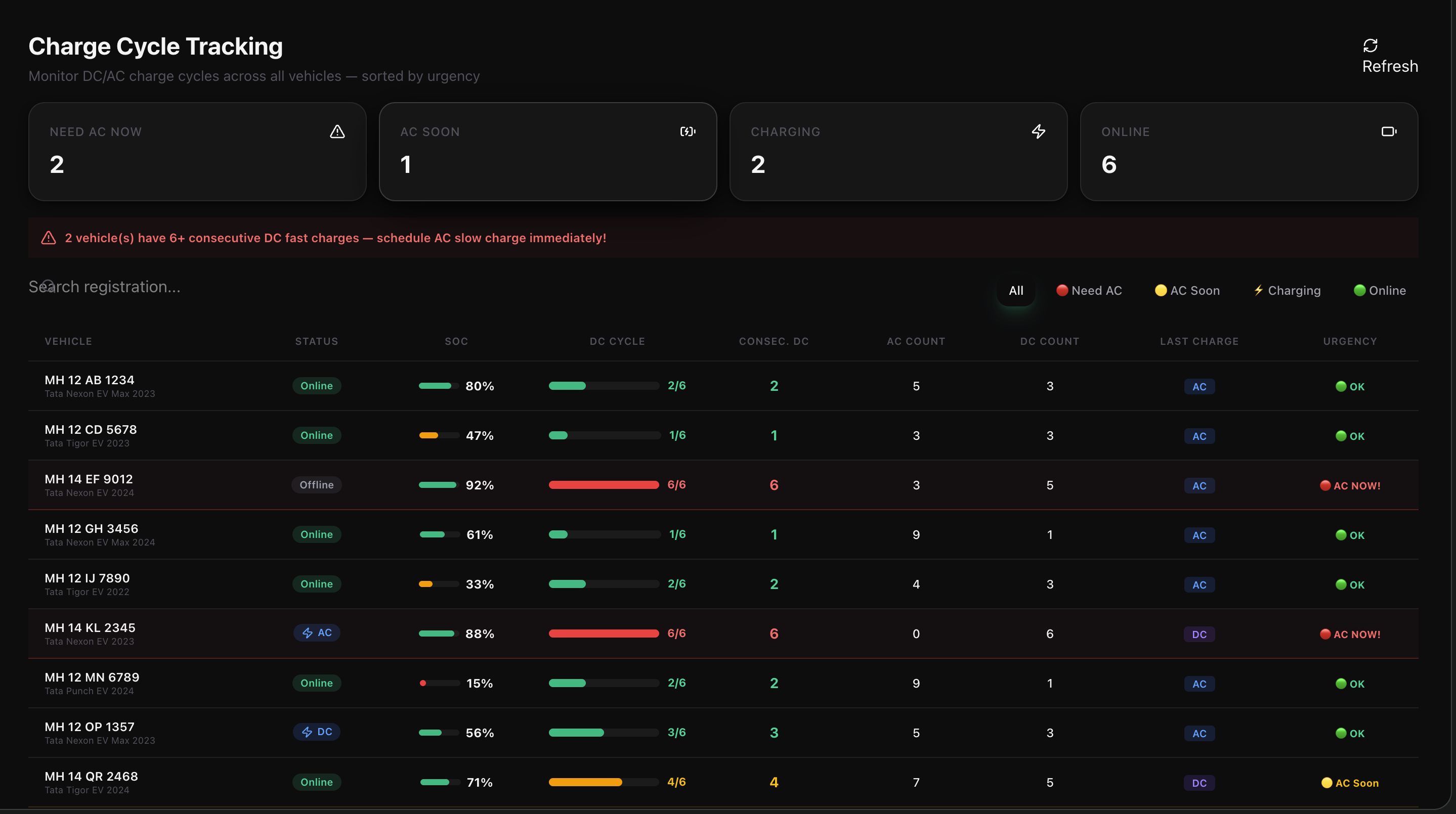 Understand your fleet's true State of Health (SOH). We monitor historical battery performance by tracking every single plug-in event and degradation curve.