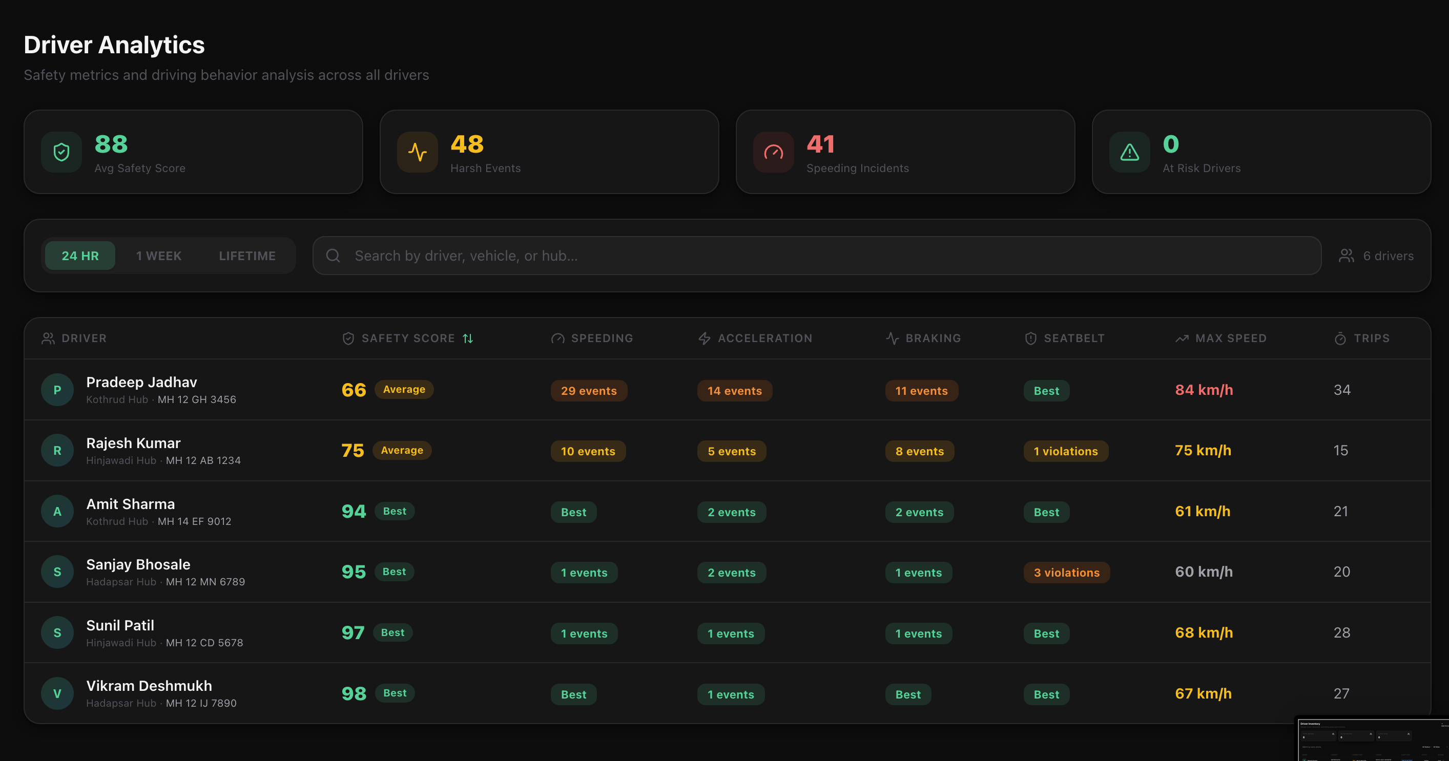 Protect your assets. We automatically score drivers based on raw telemetry triggers—logging overspeeding incidents and severe cornering events in real-time.
