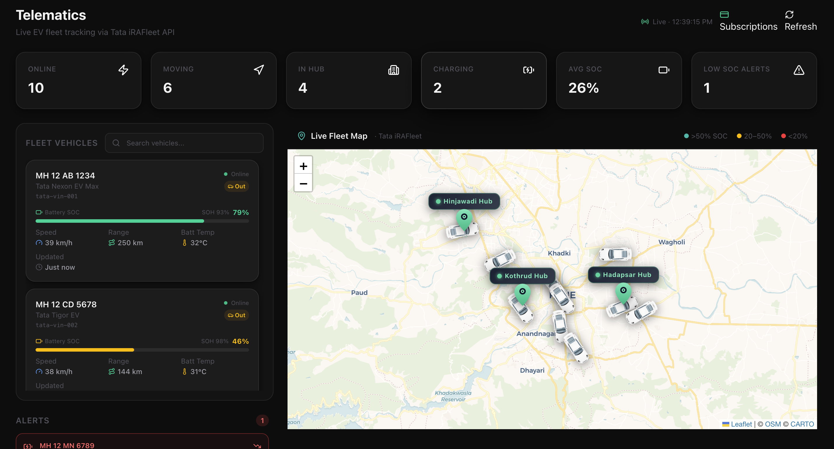 Direct integration with Tata iRAFleet and major OEM APIs. Monitor State of Charge (SoC), ignition events, idle times, and battery health to eliminate range anxiety entirely.